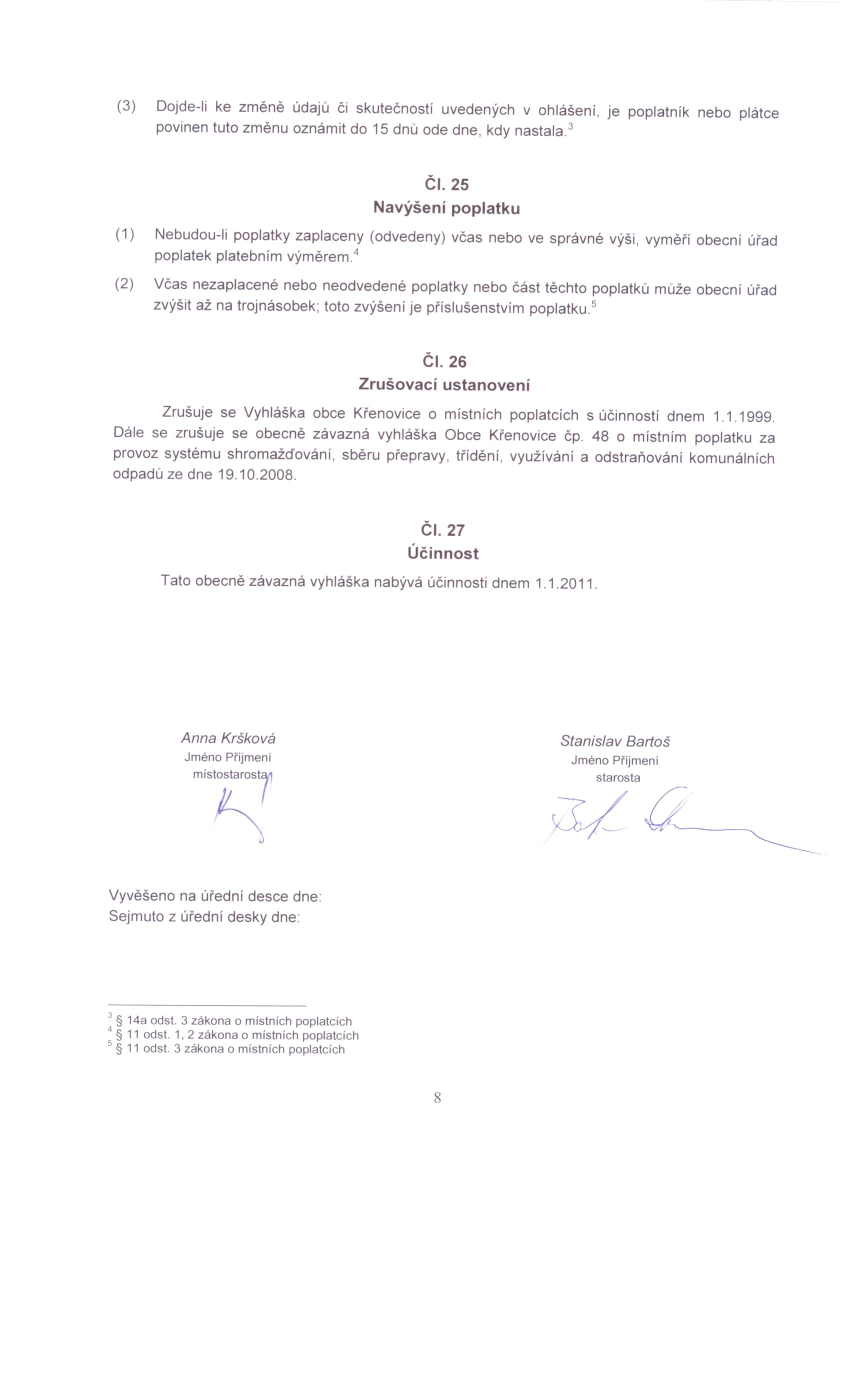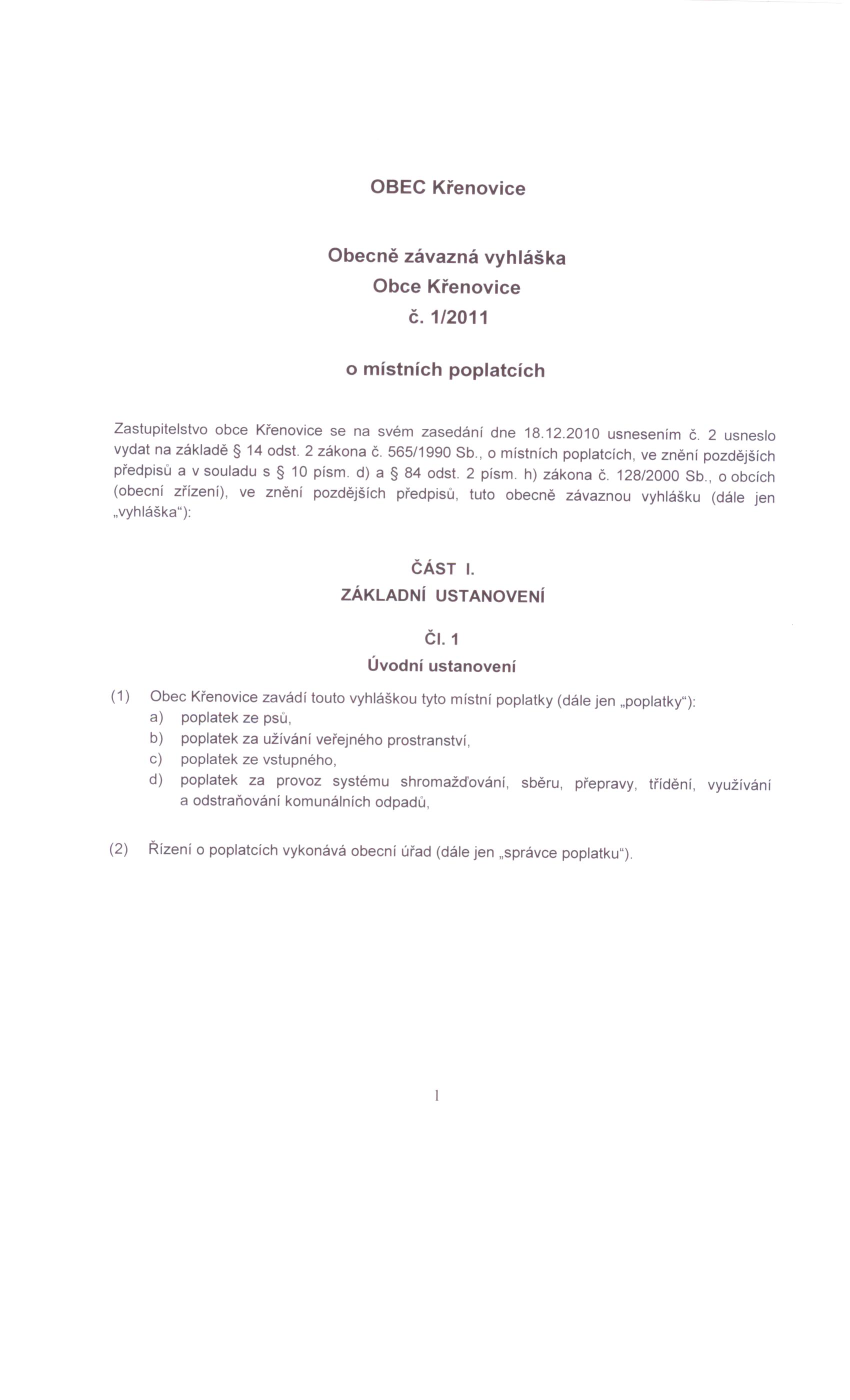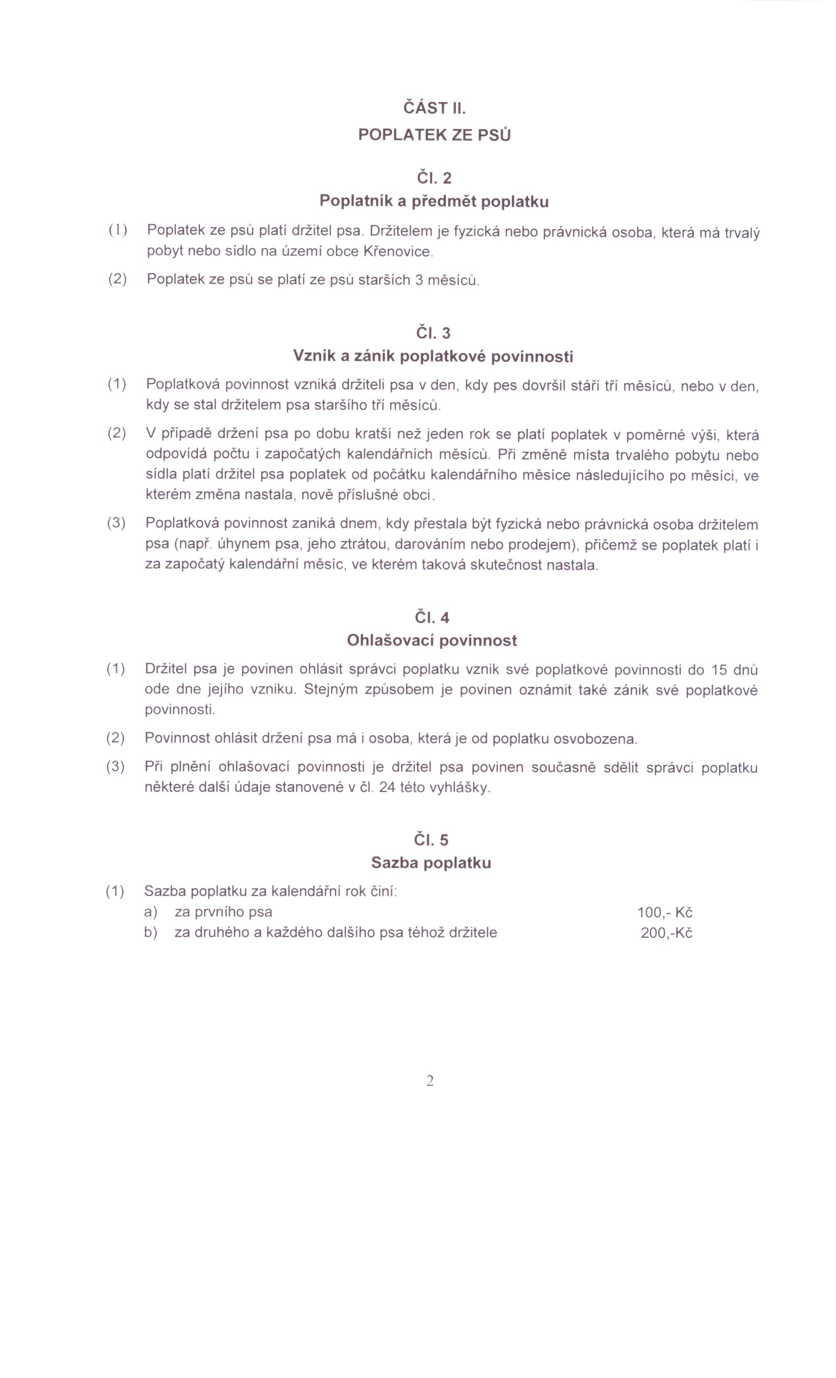 Obecně závazná vyhláška obce Křenovice o místním poplatku ze psů