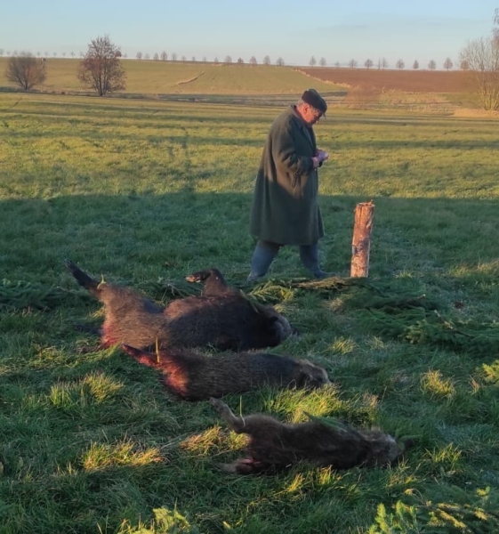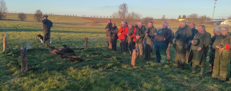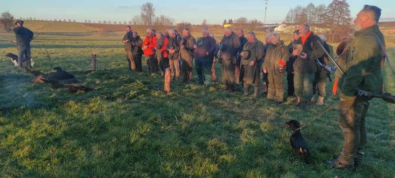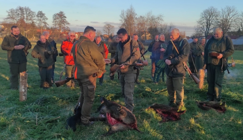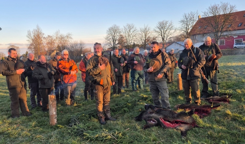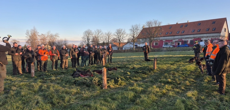 Myslivecké sdružení Jížína je společné pro křenovické a podolské myslivce. Předsedou sdružení je Jan Matulka. Ve dnech 25. 10. a 22. 11. 2025 se konaly naháňky. Na první byla střelena pouze jediná liška, na druhé pak několik prasat. Foto: Jan Matulka a Josef Hrůza