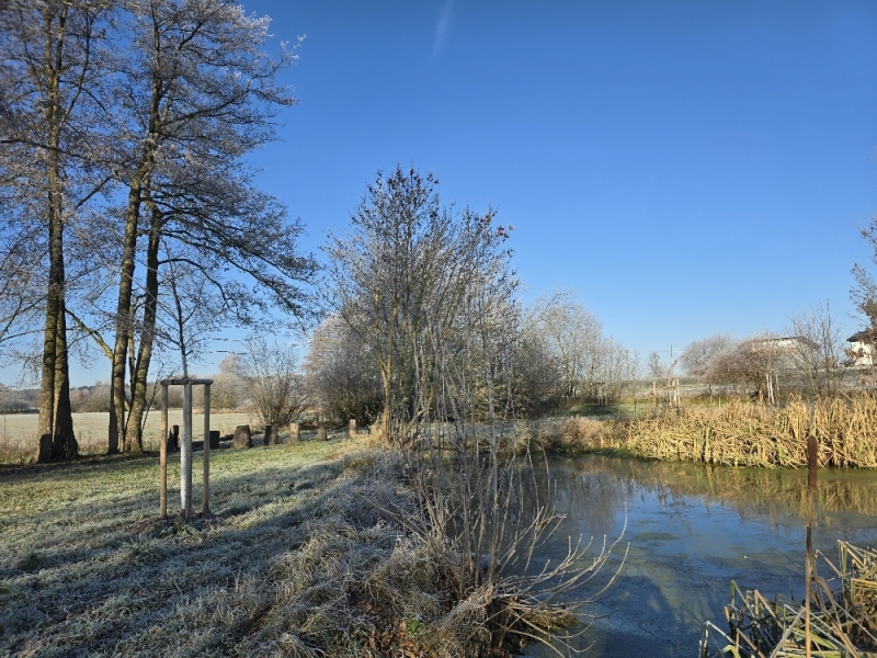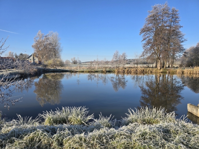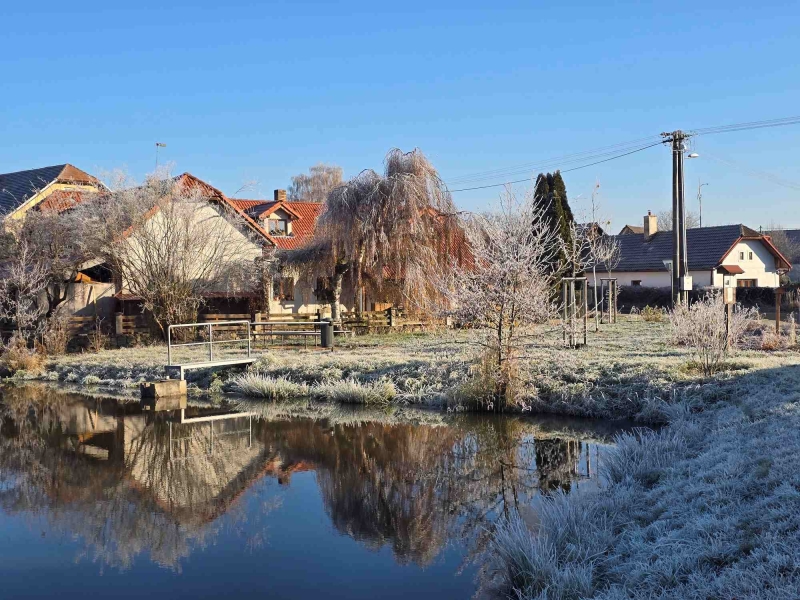 Parčík okolo obecních rybníků Lazna a Bartůnčák prošel v roce 2025 revitalizací. Fotografie zobrazují stav v listopadu 2025. Foto: Olga Kolísková