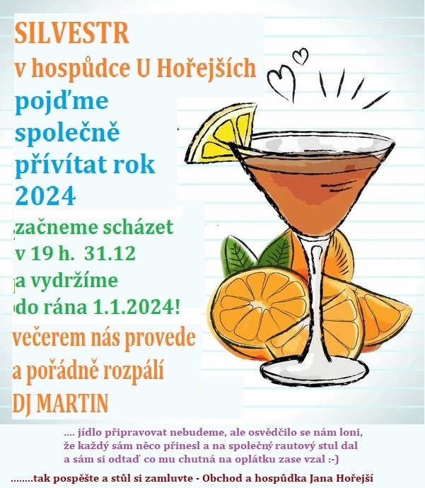 Oslavme společně Silvestr 2023 v hospůdce u Hořejších.