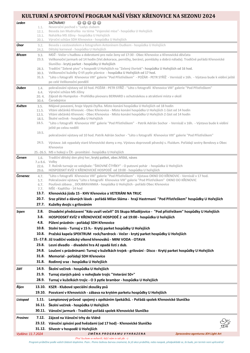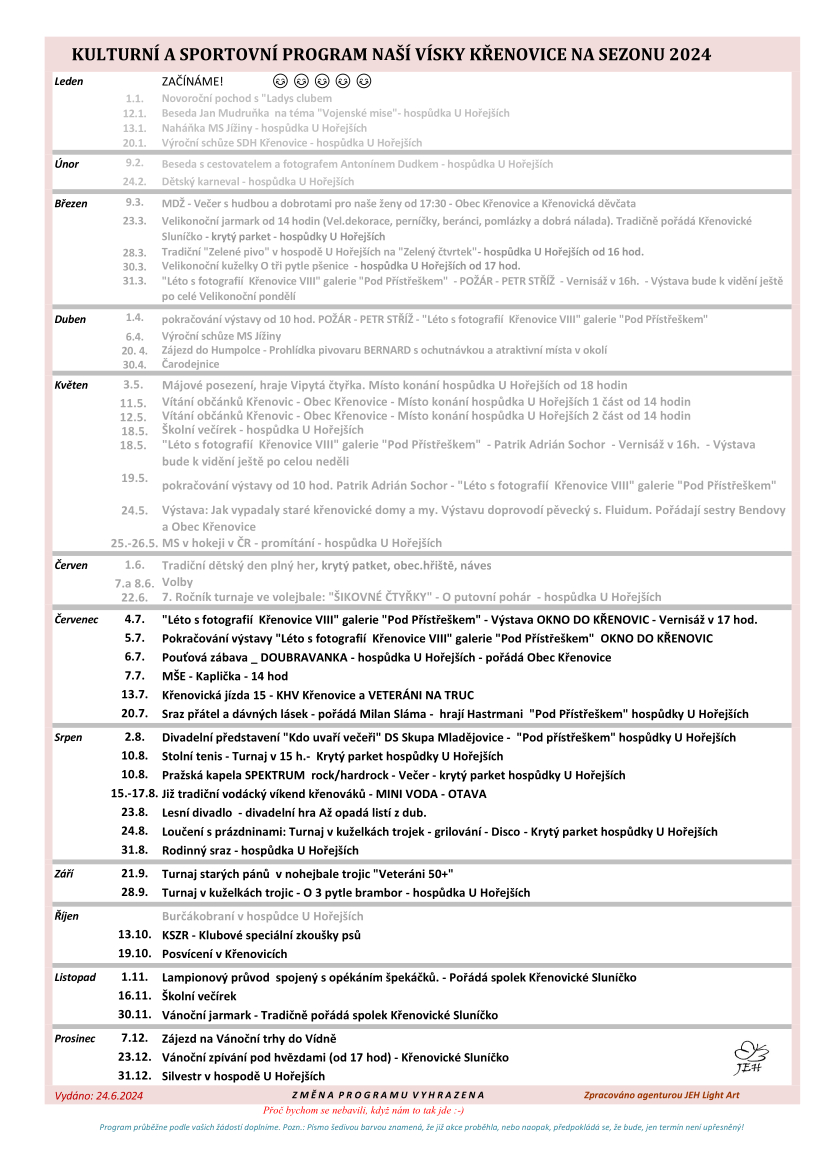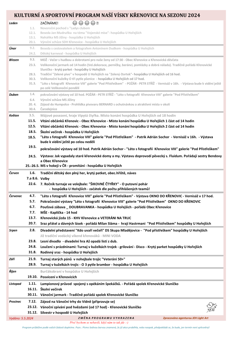 První vydaní programu na rok 2024. Podle vašich žádostí bude postupně doplněn a aktualizován.