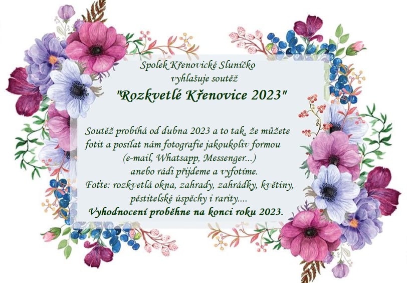 Spolek Křenovické Sluníčko vyhlašuje soutěž. Více informací naleznete v letáčku.